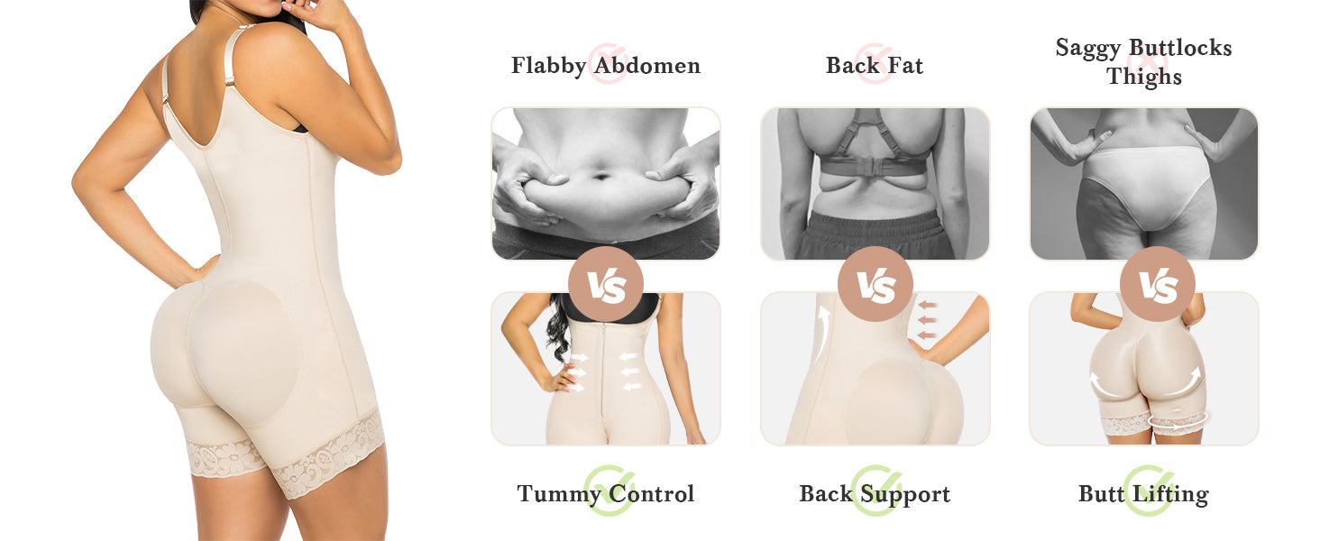 Eliminate common concerns like flabby abdomen, back bulges, and saggy thighs with our advanced shapewear. Designed to sculpt your waist, support your back.